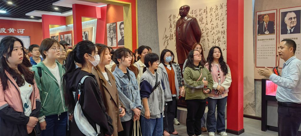 在讲解员的带领下,同学们走进毛泽东纪念馆,进一步了解了伟人生平和党的发展历程。入党积极分子周一丹表示,她从来没有看到过这么多的毛主席纪念像章,从这些一枚枚的纪念章上,仿佛看到了祖国的一次次发展变化,她感叹今天的幸福生活来之不易,是无数先烈流血牺牲换来的,我们青年一代一定不负时代不负韶华。