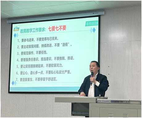 赵万红传达了学校诊断性评估教学工作专家反馈会议精神,要求学院全体教职工做好访谈座谈、教学档案调阅、听课看课等准备工作,反馈了跟学院相关的工作要求以及问题和整改要求。教学办主任魏晨对学校调阅教学档案发现的问题进行了说明和反馈,并对工作流程进行了培训。院办主任肖飞对学校安排的访谈组、听课组、档案组相关工作流程进行了培训。