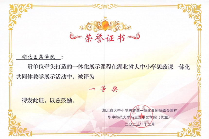 本网讯(通讯员 陈全新)近日,公司在湖北省大中小学思政课一体化共同体牵头高校华中师范大学组织的2023年度湖北省大中小学思政课一体化共同体教学展示活动中荣获一等奖。