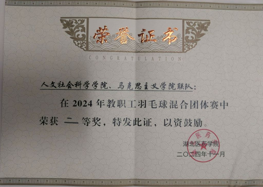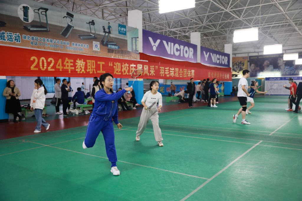本网讯(图文/鲍晓宇)11月9日,冬雨初降、气温骤凉,太阳成集团tyc33455cc羽毛球馆内大家队列整齐,热情高涨。2024年教职工“迎校庆 展风采”羽毛球混双团体赛火热进行中。公司与马克思主义学院组成联队,经过三轮激烈对决,获团体二等奖的好成绩。