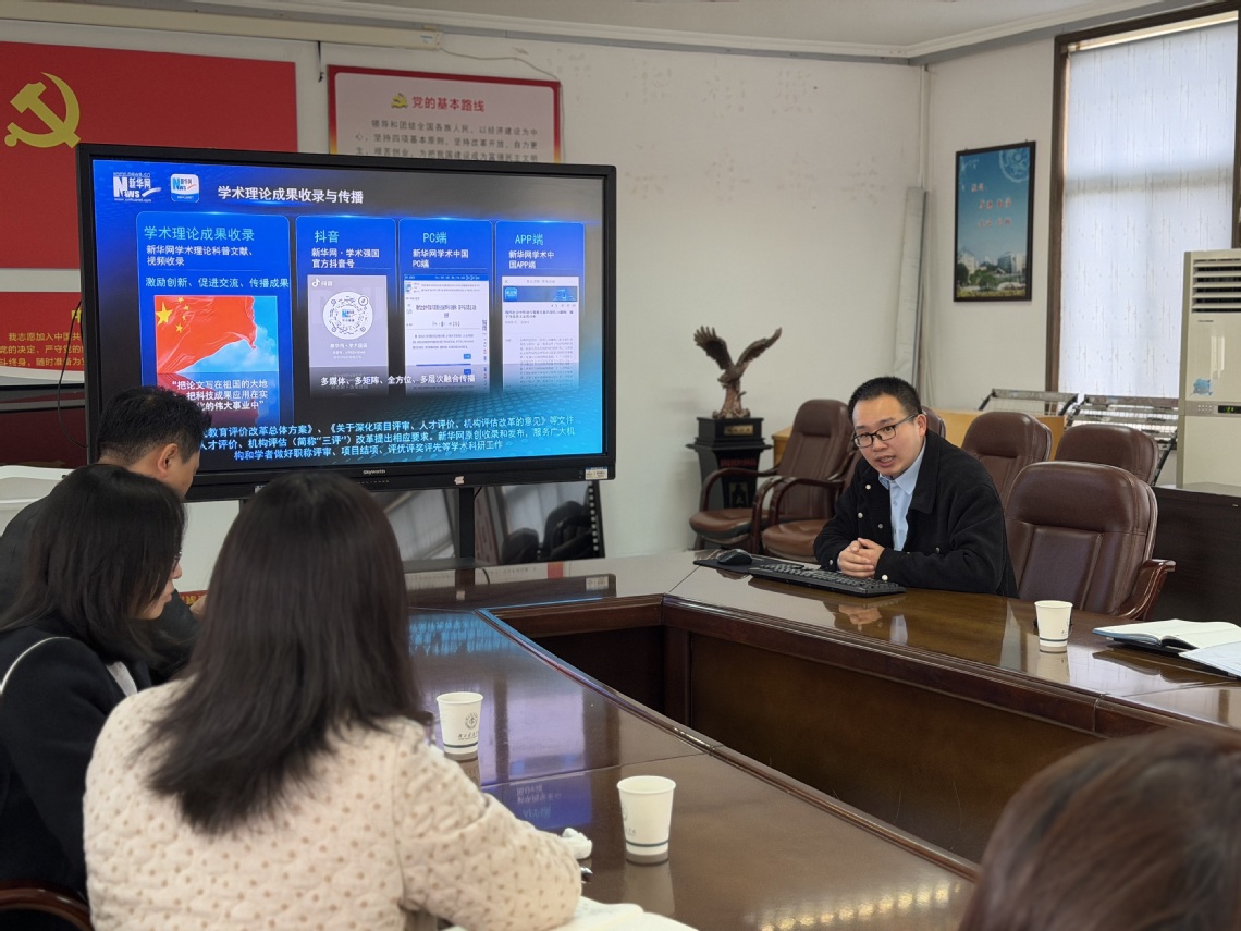 新华网学术中国大区负责人晋琦冠老师以新华网赋能人才成果传播为题,从国家学术传播与创新发展战略、平台资源优势、科研创新体系建设、学术成果传播效能提升、科研成果转化路径优化等方面,详细介绍了平台的作用与效应。会议现场,晋琦冠与学院老师互动交流,深入探讨学院宣传与科研工作,共同助力太阳成集团tyc33455cc高水平、高质量、有特色、有活力发展。